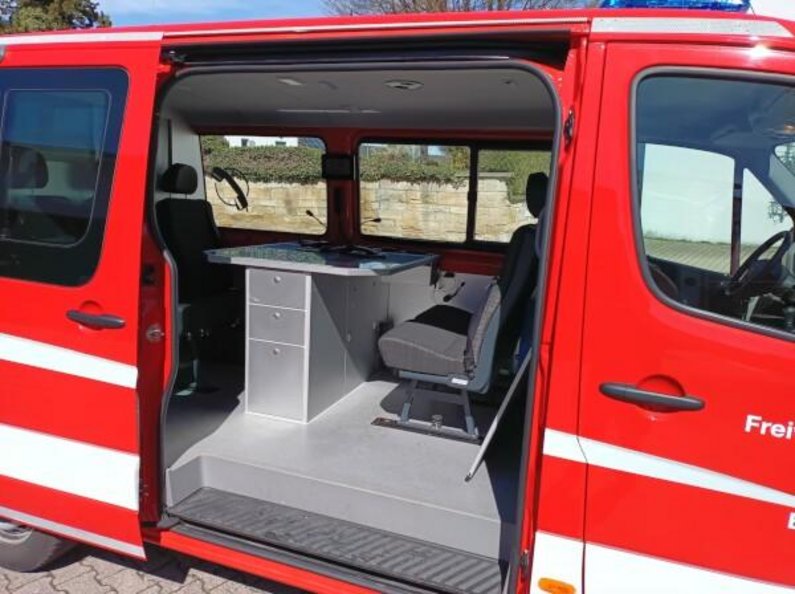 Der Mannschaftstransportwagen dient zur Beförderung von Einsatzkräften zum Einsatzort. Aufgrund seines großen Stauraums hinter den Sitzbänken, können außerdem noch Geräte und Material transportiert werden.