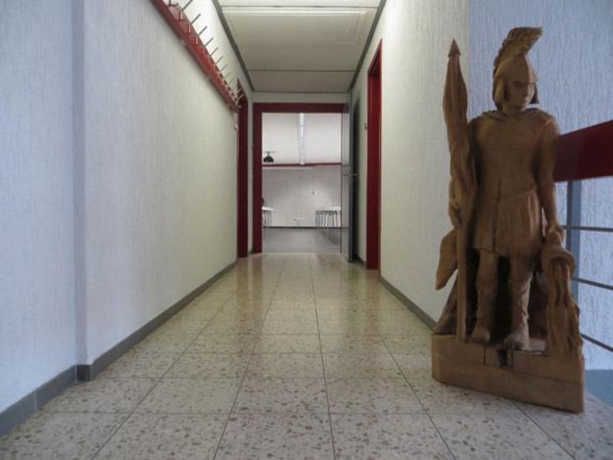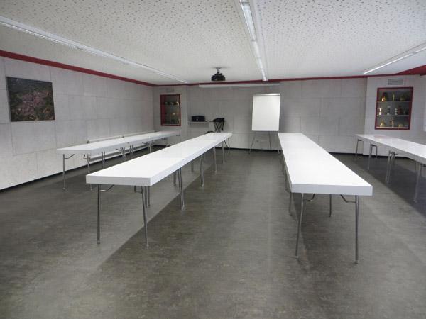 Der Lehrsaal befindet sich im Obergeschoss des Feuerwehrgerätehaus und bietet etwa 80 Personen Platz.